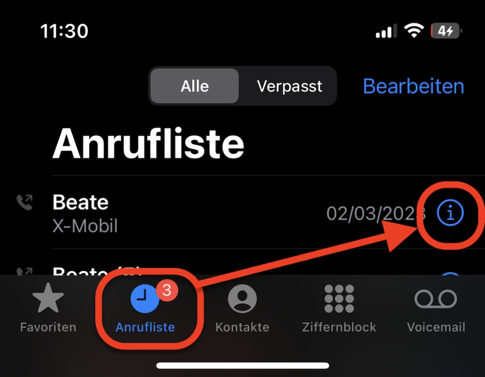 Open the Phone app and click on the Recents tab. Now select a contact or number you want to block by tapping the “i” on the right edge.