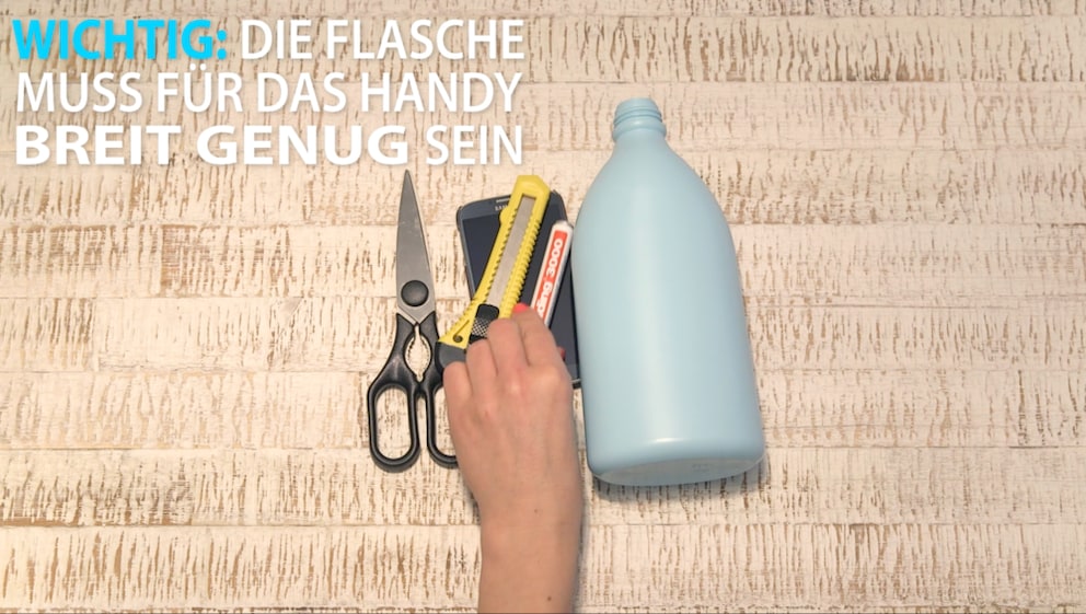 Cut the shampoo bottle into shape with the utility knife as shown in the video. You can draw guide lines with the felt-tip pen beforehand.